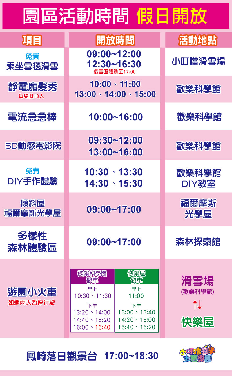 *園內保有說明、變更或終止活動內容之權利,若有異動依官網公告或售票口現場公告為主。