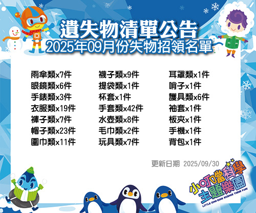 2025年9月~2026年2月 失物招領清單