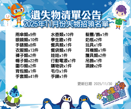 2.遺失物如為貴重物品或具名之有價證券,則須由所有人親自領回。 (本園區恕不負保管責任)