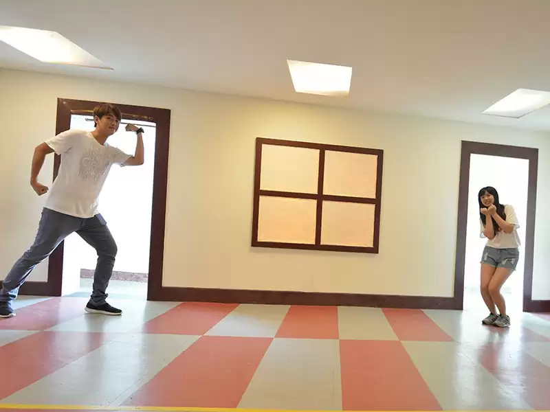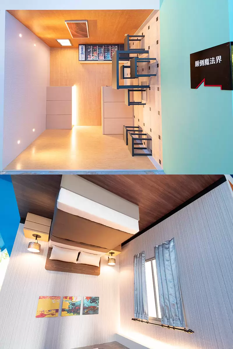 當你走進顛倒屋時會發現屋內家具都是倒置傾斜,會有一種錯亂的感覺,帶來全新神奇的感官體驗。“顛倒屋”挑戰我們已經定型的大腦平衡系統和視覺習慣,體驗者可以擺出各種創意動作,與顛倒的場景合影,製造出更加奇妙的效果。