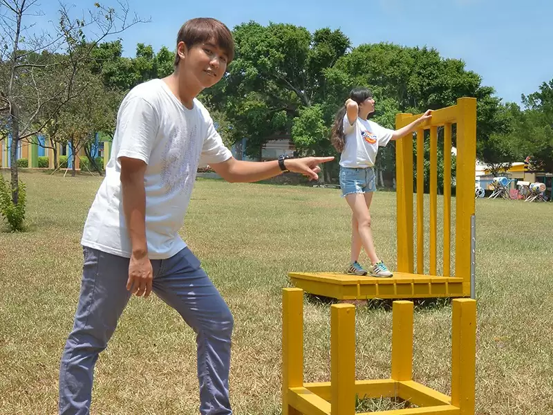 試著找出兩位相同身高和體型的小朋友,走到步道裡感覺我們的身高是否會造成差異性呢?觀察看看,一起來實驗吧!