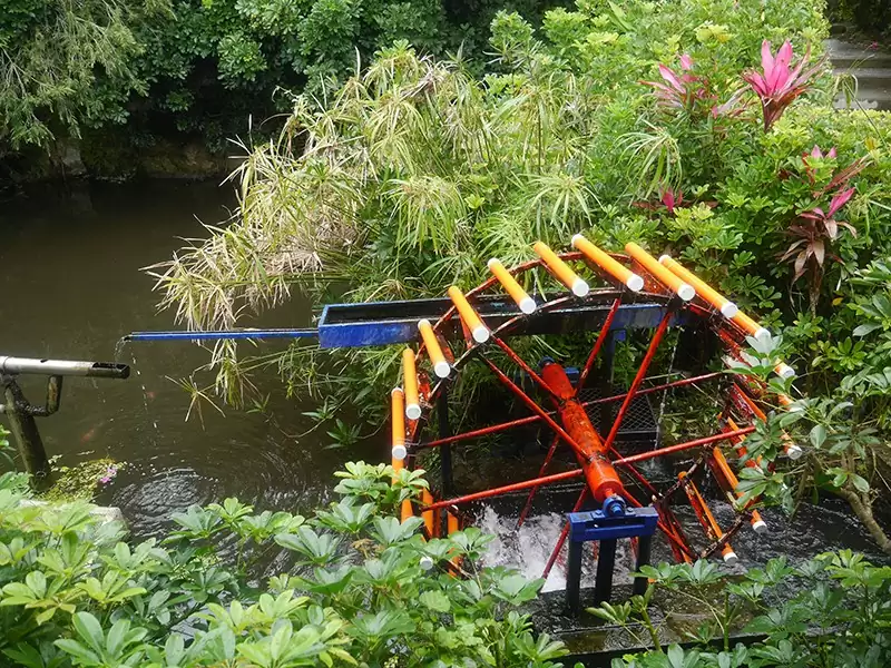 由日本人所设计,用于静止湖水,以脚踩踏来转动滚轮,让滚轮旁的箱子不断装水上来灌溉农田。